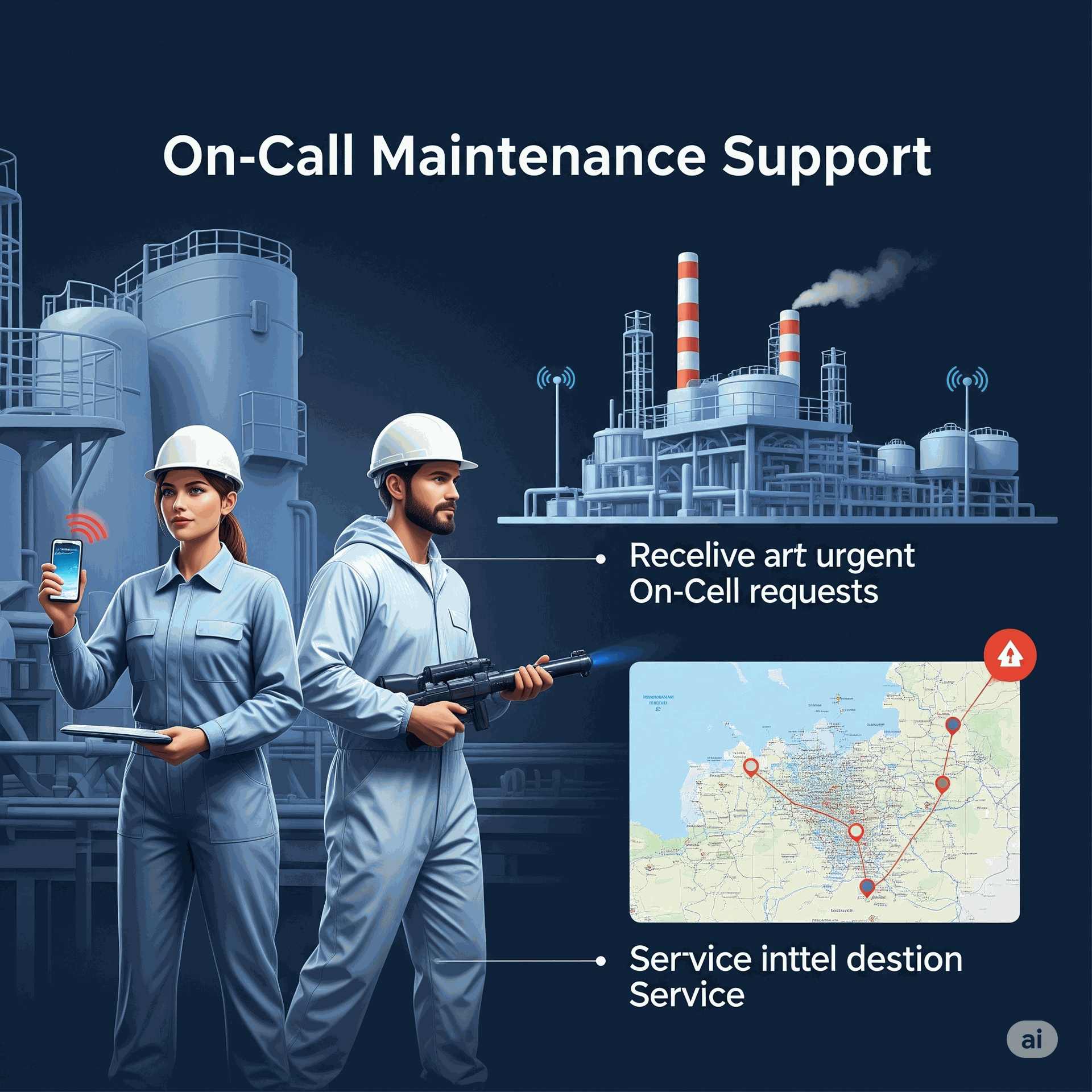 24/7 responsive maintenance support providing quick repairs and technical assistance to minimize downtime and maintain operations.